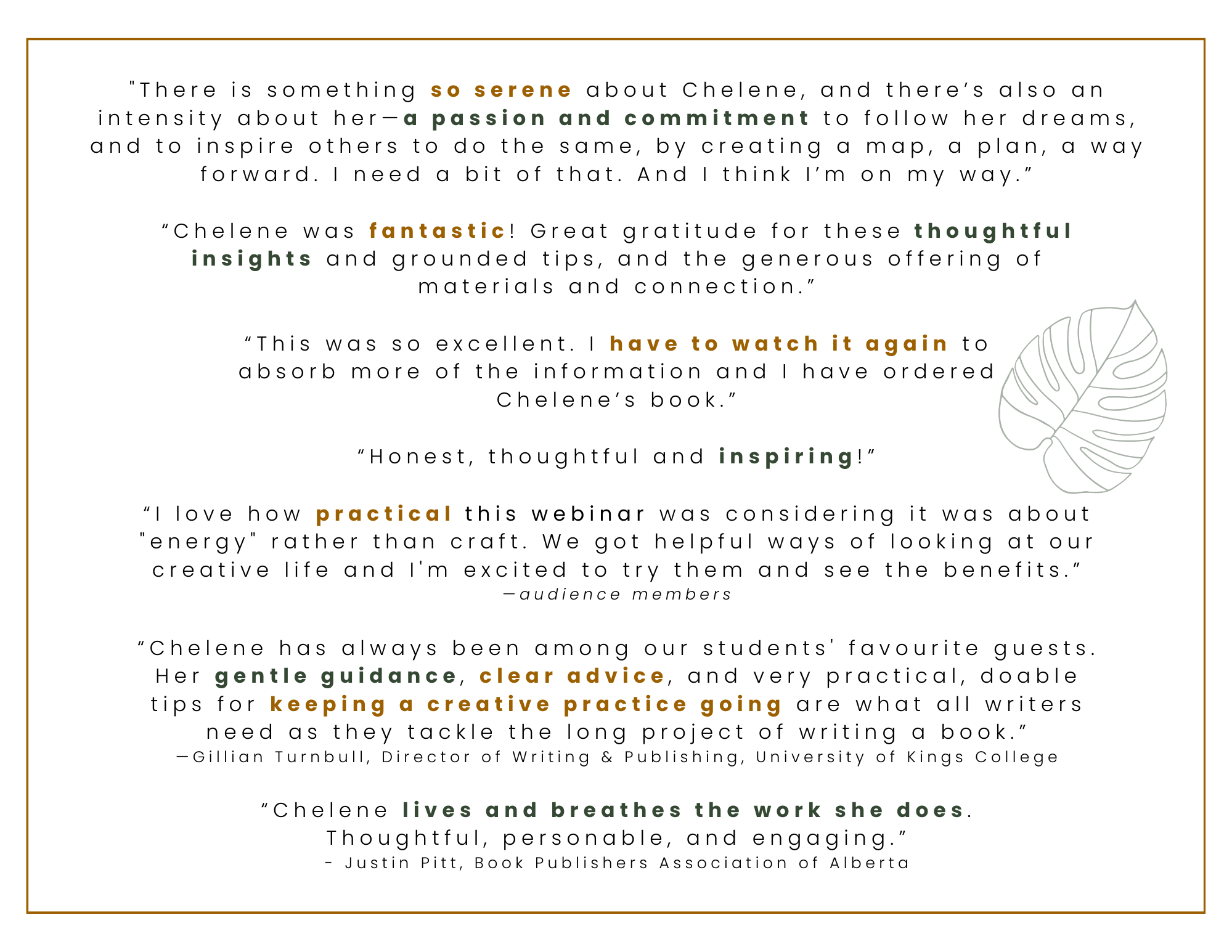 Kind words about Chelene’s workshops, webinars, and presentations: